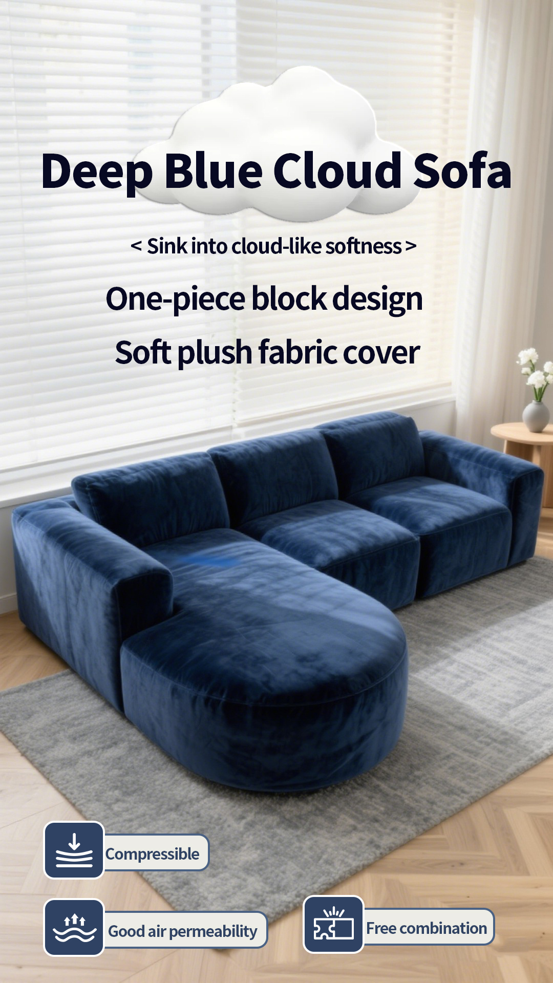Deep Blue Cloud Sofa
